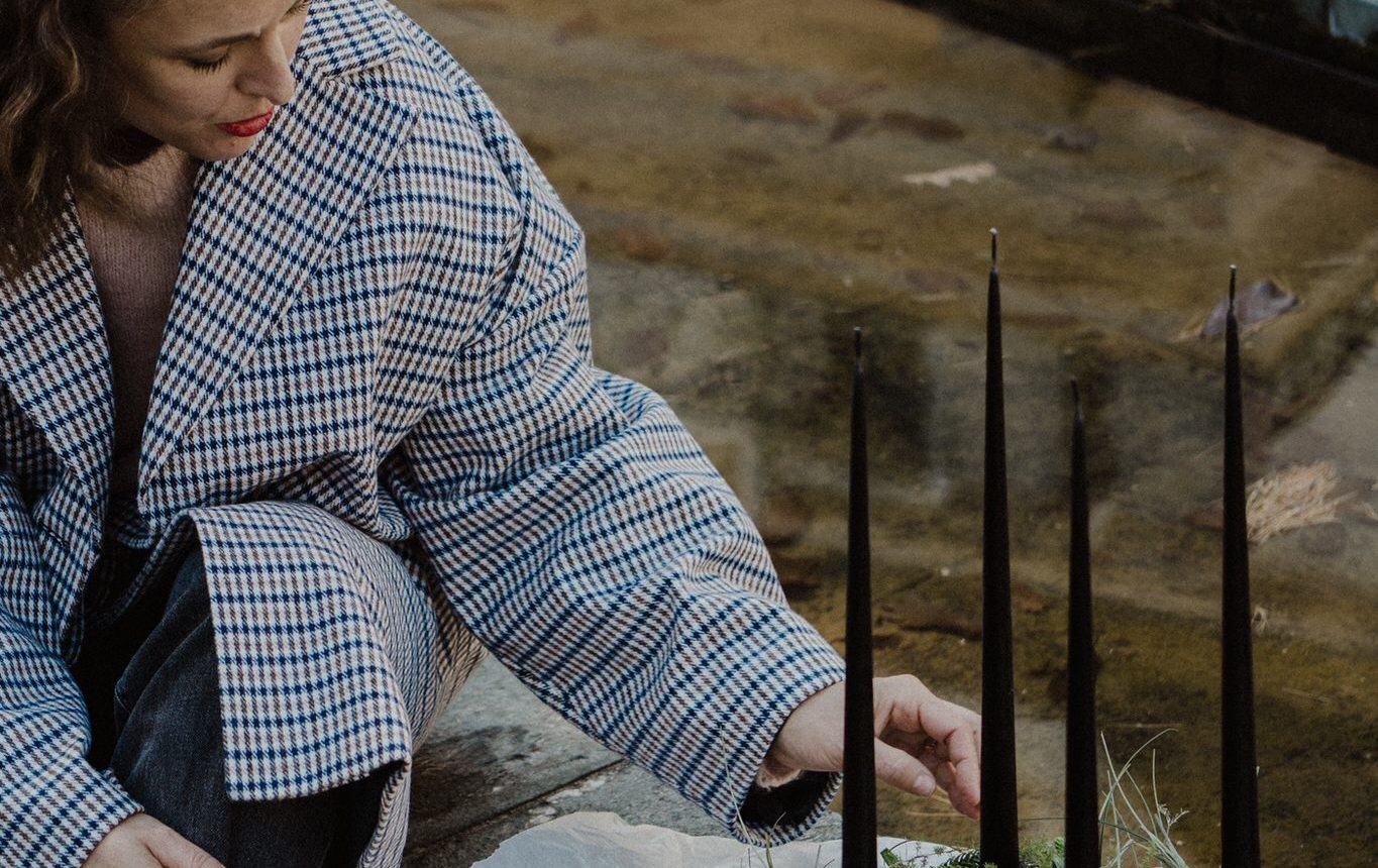 Adventkranz aus zarten Gräsern- symmetrisch geschmückt Ø35cm vollrund – haltbar – Kerzenfarbe Schwarz , Kerzen handgemacht aus einer Manufaktur in Dänemark